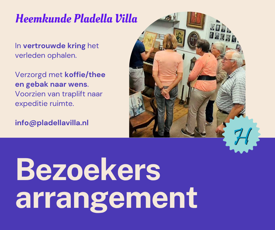 Heemkundige kring Pladella Villa  met eigen bibliotheek, Boekenuitleen en verkoop, archieven en een uitgebreide verzameling van historische objecten en documenten. Neem een kijkje in de collectie en leer meer over de historie van een regio of dorp. Wij organiseren ook interessante lezingen en workshops die gericht zijn op verschillende aspecten van lokale geschiedenis, zoals plattelandsleven, ambachten en industrieën.